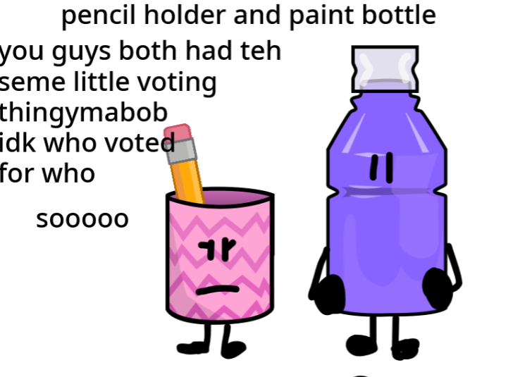 Bottle of paint was a male contestant that first debuted in NNOS season 2 . He got to play because the host didn't set up the votes properly making Pencil Holder and him share votes.